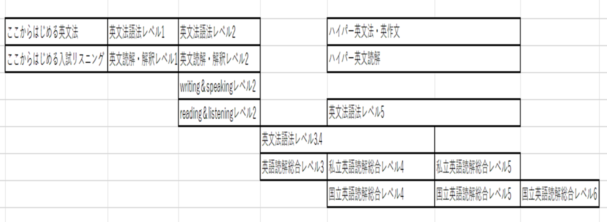 英語を例に以下の表のように講座には種類と