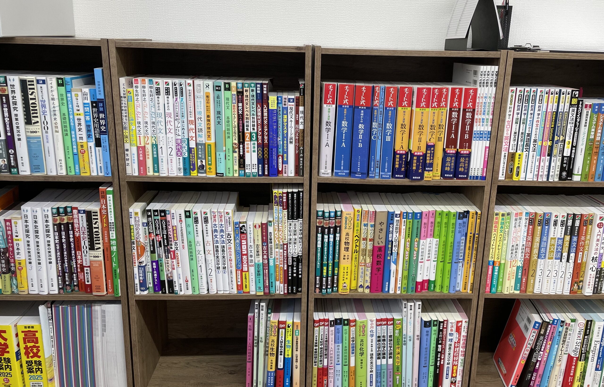 最新の参考書なども校舎にあり