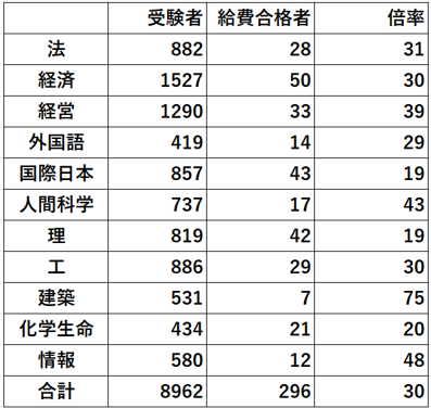 どの学部もかなり高倍率かつ年度によって上下動します。