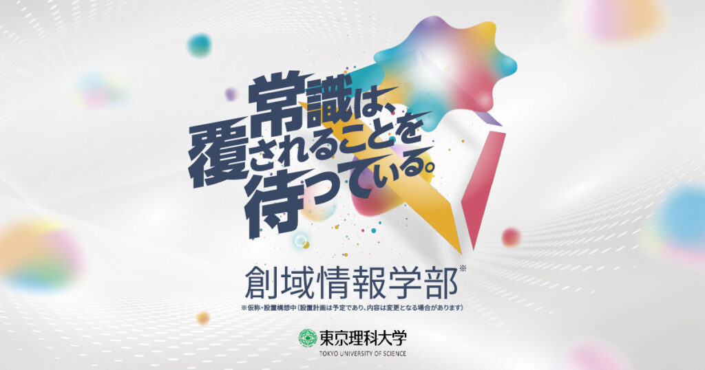 新学部「創域情報学部」と理学部第一部に「科学コミュニケーション学科」を新設予定。